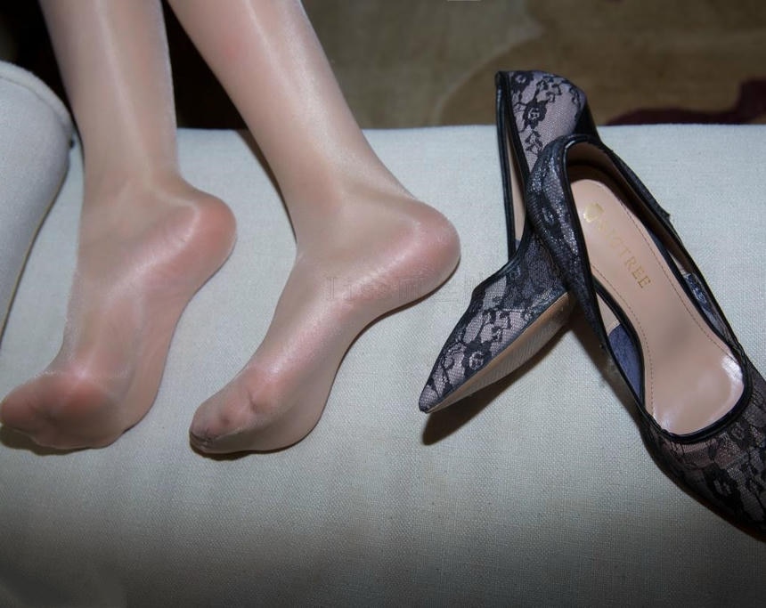 在柔和的晨光中,她轻轻滑入那双短款咖啡色透明丝袜,薄如蝉翼,这样的脚脚,也是性感的。
