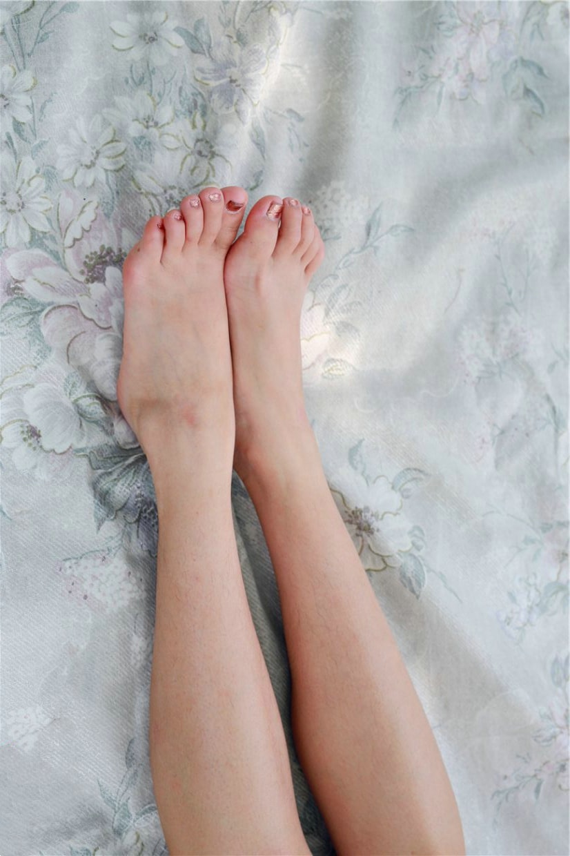 女生的皮肤其实没那么黄,是相机的问题,算不上是美脚,小腿还有疤痕,缺陷的美也是美